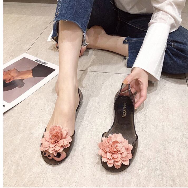 ラバーサンダル パンプス レディース フラワー 透明 防水 滑り止め ラバーシューズ ローヒール ぺたんこ フラット クリア シースルー ビーチ リゾート 履きやすい 歩きやすい 痛くない 美脚 | primarc