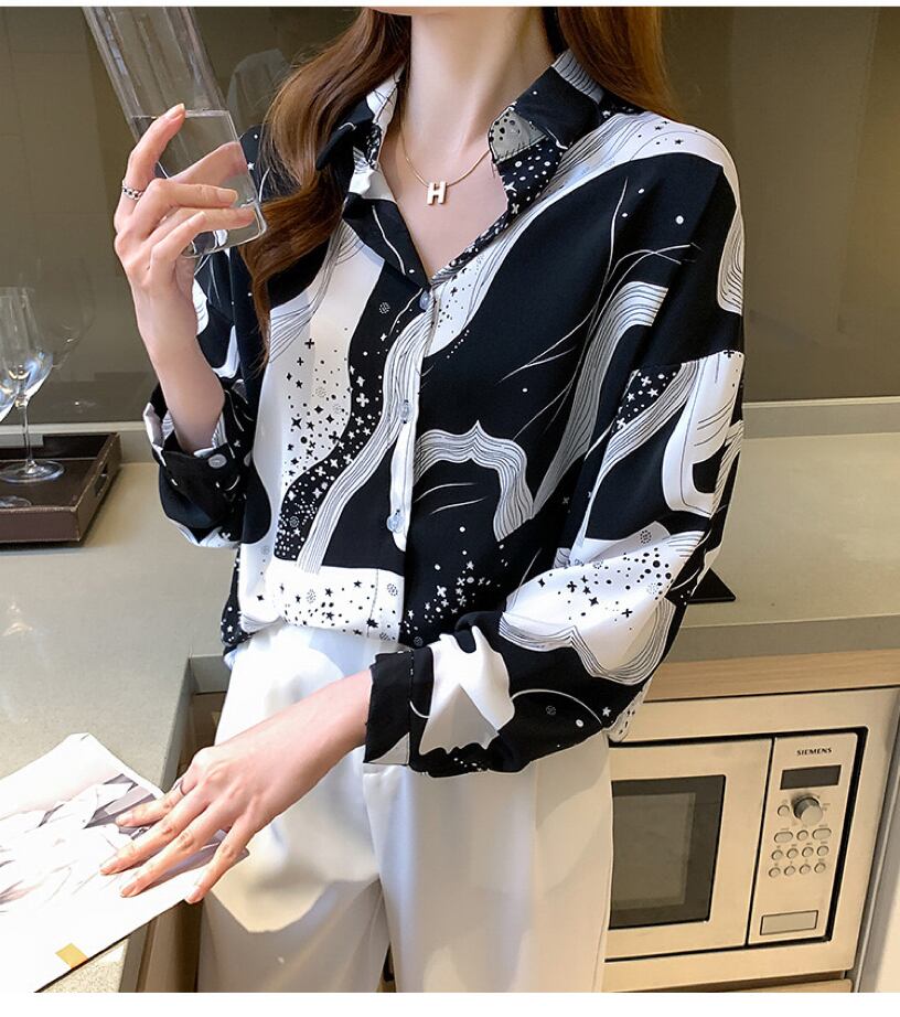 流れるような曲線がノスタルジックな星空アートシャツ。