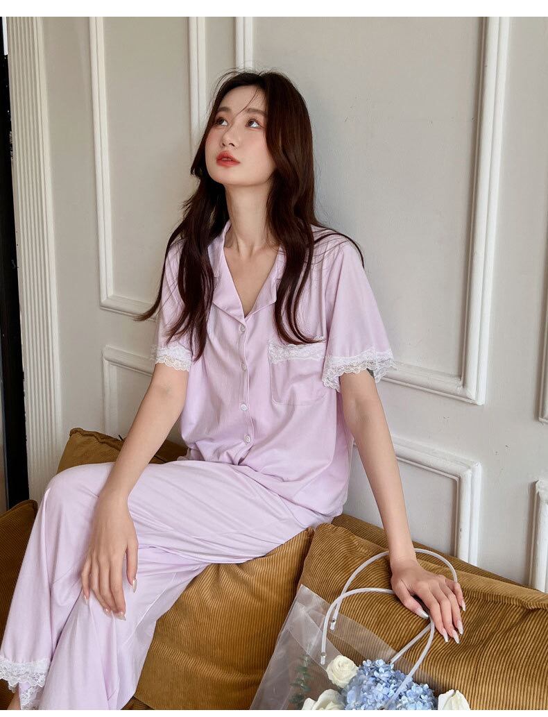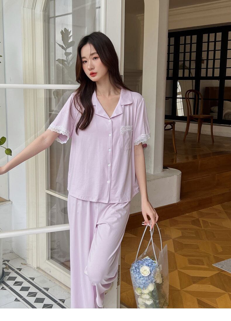 涼しい夏の夜にぴったりの半袖&長ズボンのセットですが、デザインもかわいらしく甘い印象に仕上げました。 心地よい肌触りの素材を使用しており、着心地が良く伸縮性もあります。快眠をサポートし、熟睡できるように工夫されたデザインで、爽やかであたたかい気持ちで眠りにつくことができます。