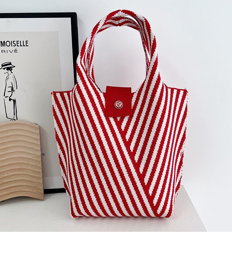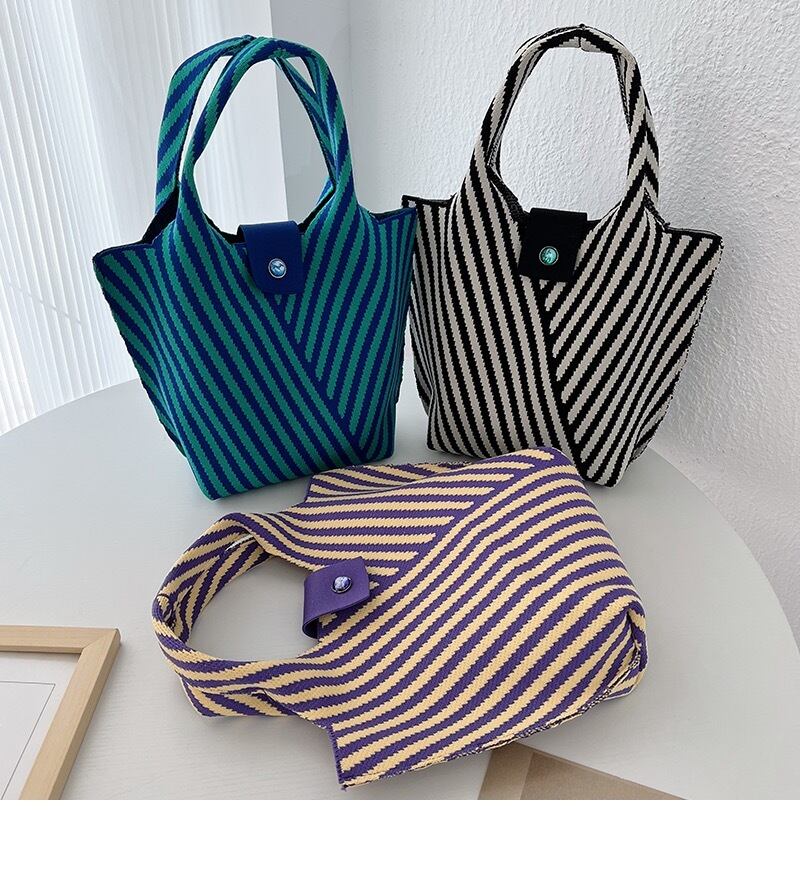 ニットバッグ オールシーズン使いやすいニットバッグ バッグ ニット マルシェバッグ トートバッグ クロシェ編み 編み ハンドバッグ ニットバッグ レディース ミニバッグ ストライプ 柄 無地 | primarc
