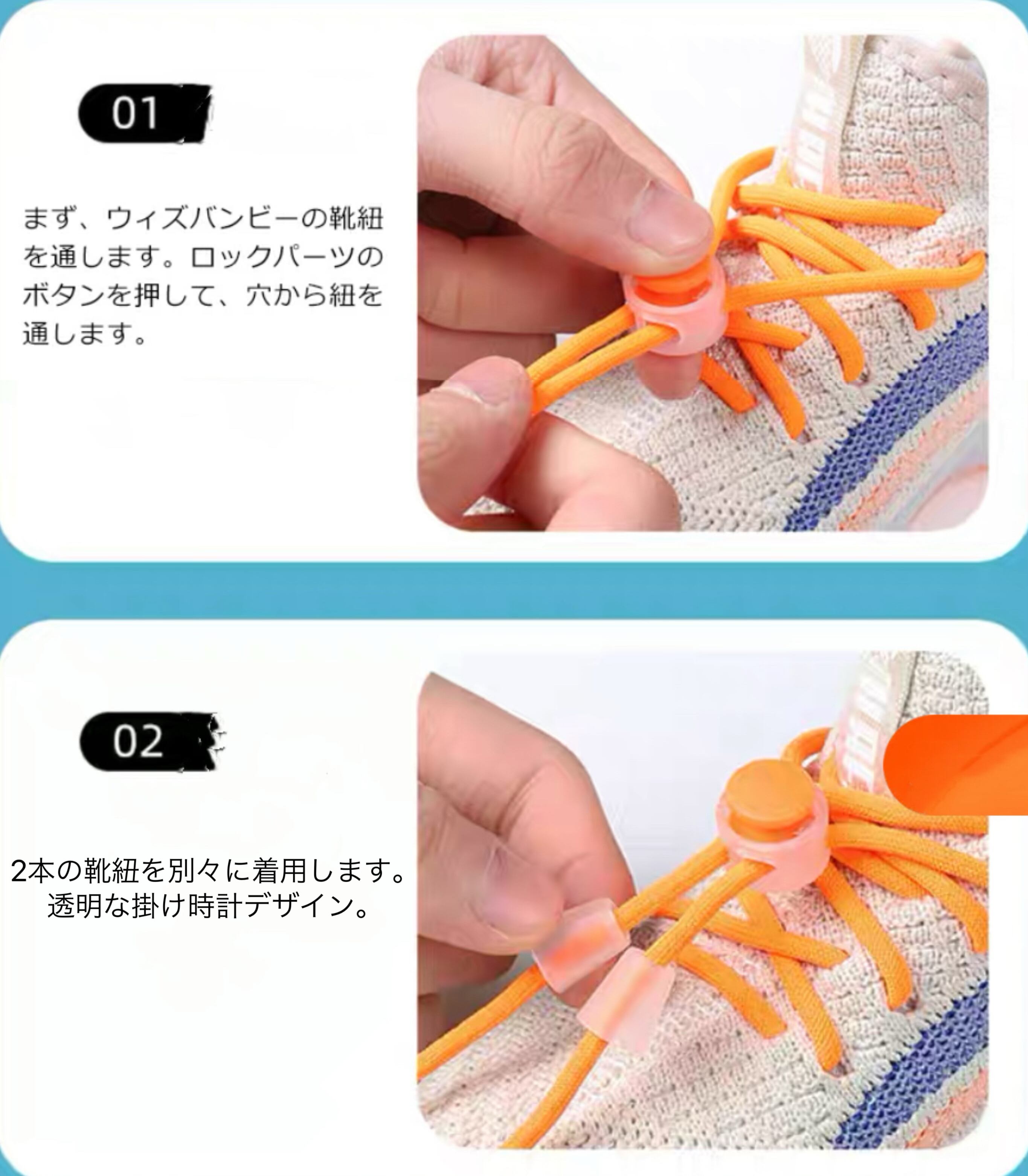 靴ひもを毎回結んだりほどいたりしないで靴が履けるとても便利な靴紐。
