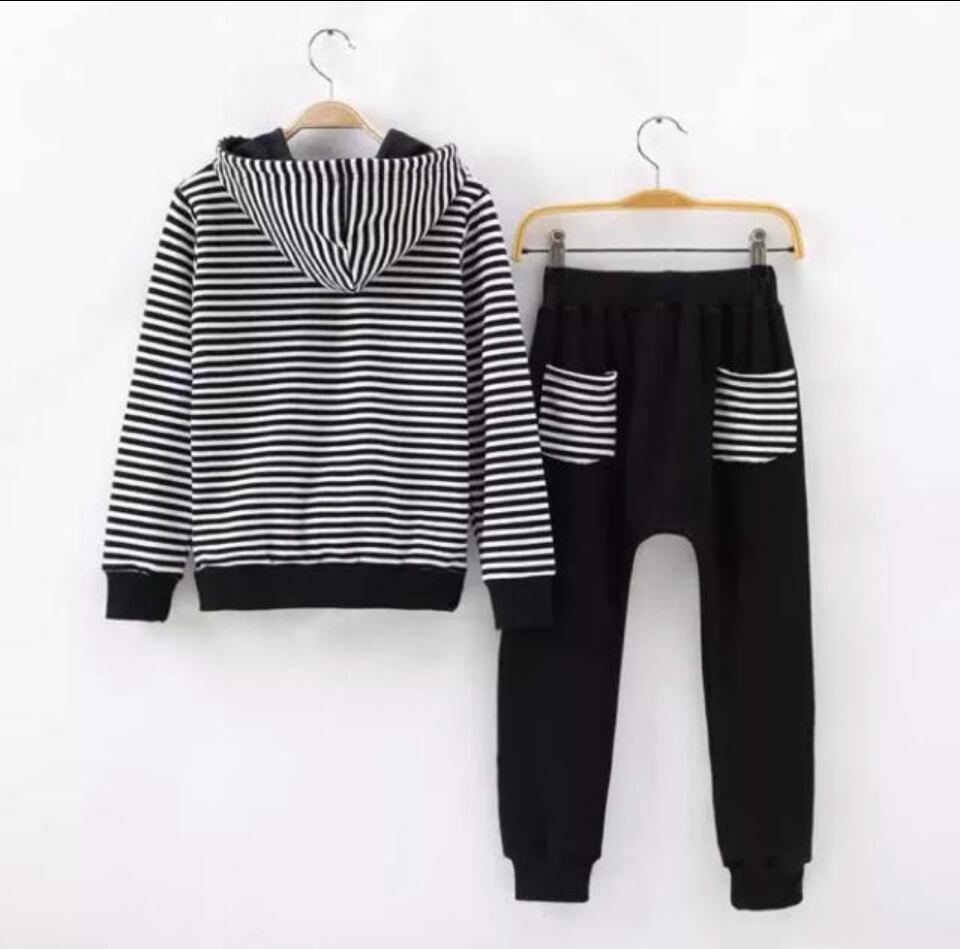 即納でお届けするボーダー柄のキッズセットアップです。男の子や女の子にぴったりなデザインで、おしゃれな着こなしが楽しめます。上下セットでコーディネートも簡単!柔らかな生地とゆったりとしたシルエットで、子供たちの動きを妨げません。