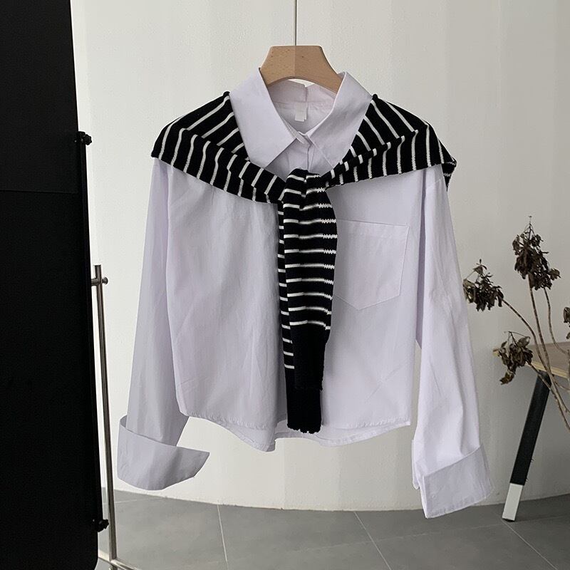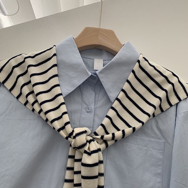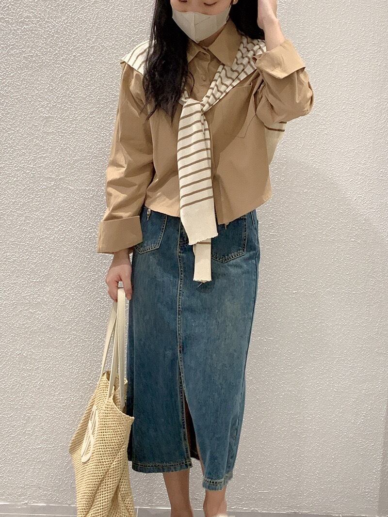 ゆったりとしたオーバーサイズのシャツブラウスです。シンプルなデザインながらも、肩掛けニットが付いていて、一枚でコーディネートが完成する便利なアイテムです。無地なので、様々なボトムスやアウターとの相性も良く、カジュアルからきれいめまで、幅広いスタイリングが楽しめます。さらに、ゆったりとしたシルエットで体型カバーもできるので、自信を持って着ることができます。