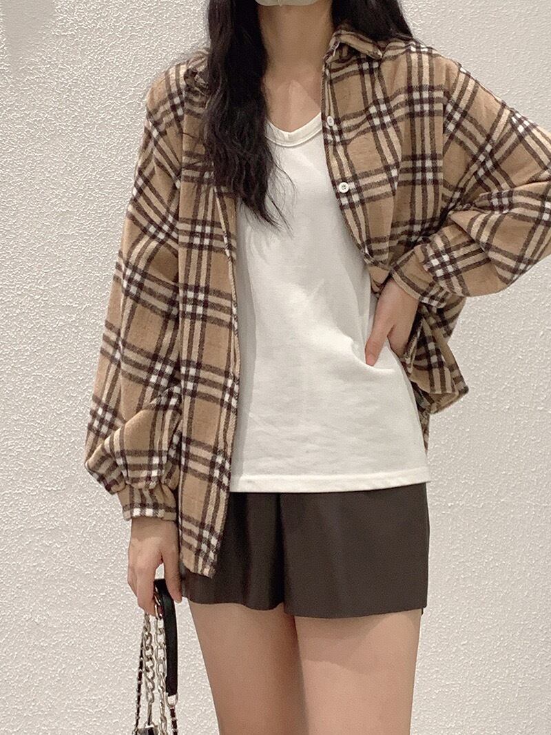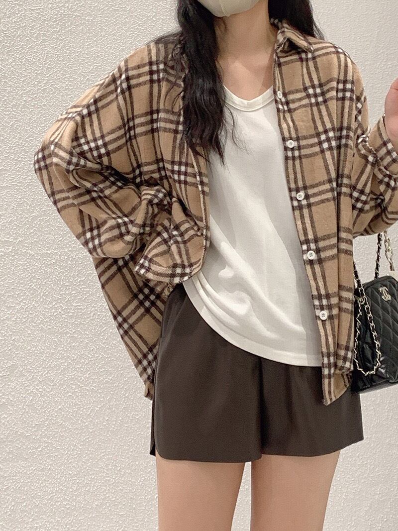 チェック柄のゆったりシャツが登場!オーバーサイズのシルエットがトレンドの今、旬のスタイルを楽しめます。柔らかな素材を使用しており、着心地も抜群。カジュアルなコーディネートにぴったりで、秋冬のおしゃれに欠かせないアイテムです。ワンピースの上にさらっと羽織ったり、パンツと合わせてカジュアルに着こなしてみてください。チェック柄が個性的で、コーディネートをさらに引き立ててくれますよ。是非お試しください。