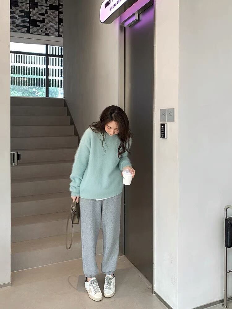 特徴ゆったりとリラックスしたフィット感で、柔らかい肌触りとふわふわした長い毛足が特徴的なフェザーヤーンシャギーを採用したニットトップス。