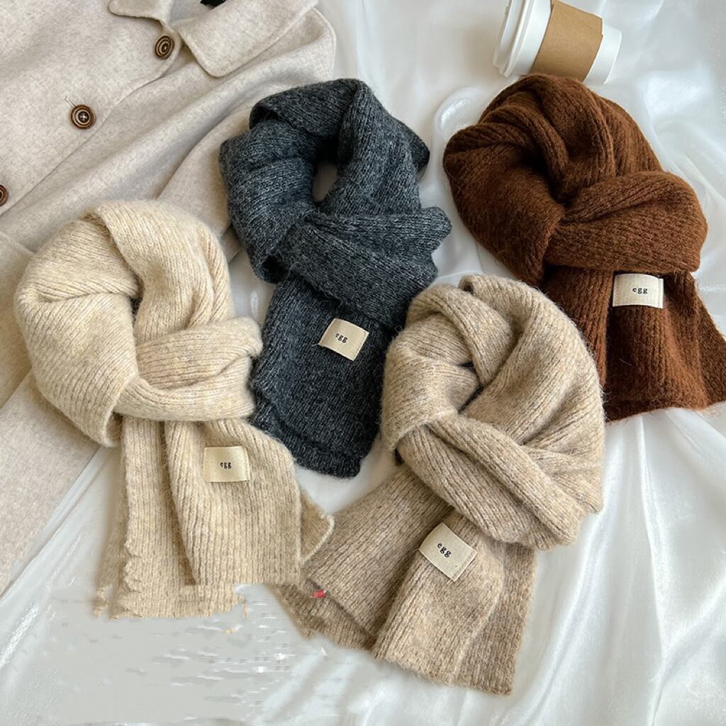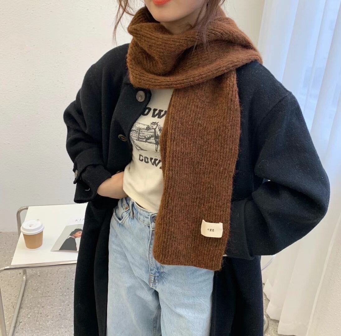 シンプルなデザインが魅力のニットマフラー。フリンジなしで、上品かつカジュアルな印象を与えます。秋冬のおしゃれコーディネートに欠かせないアイテムです。