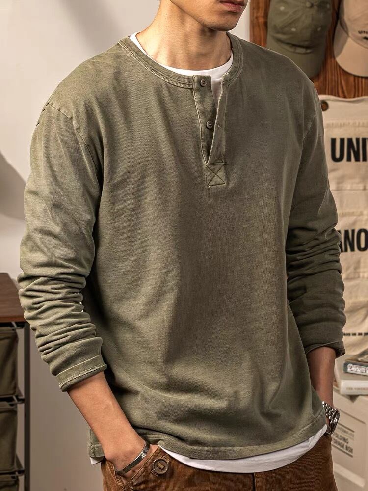 100%綿のロンTシャツは、シンプルで大人っぽい雰囲気が魅力のアイテムです。長袖であるため、春から冬まで長く着用いただけます。無地のデザインなので、どんなスタイルにも合わせやすく、幅広いコーディネートに活躍してくれます。 こちらのTシャツは、細身でタイトなシルエットが特徴です。体のラインをきれいに引き立て、スタイリッシュな印象を与えます。Vネックやクルーネック、ヘンリーネックの幾つかのバリエーションもご用意しておりますので、お好みに合わせてお選びいただけます。 素材には100%綿を使用しており、肌触りが柔らかく、快適な着心地を実現しました。また、ロンTシャツなので、少し厚手の生地を採用しており、暖かさもしっかりと提供します。 おしゃれでシンプルなデザインのTシャツは、ワードローブに一枚あると便利です。ビジネスシーンからカジュアルなデートまで様々な場面で活躍してくれます。ぜひ、この機会にご検討ください。