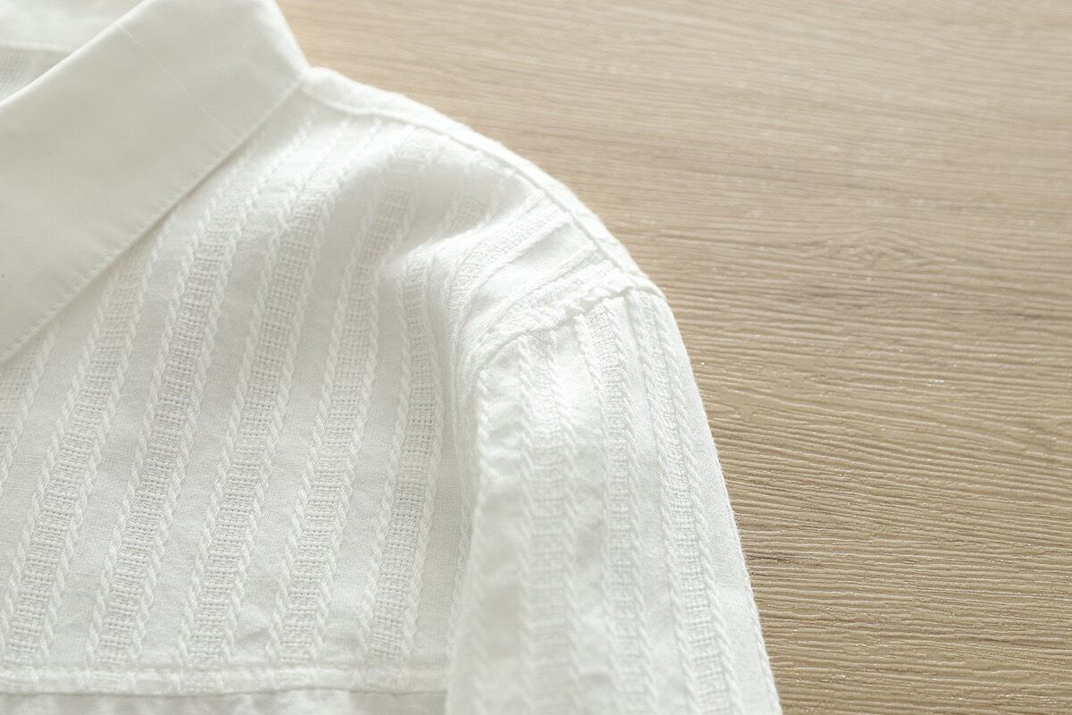 素材とシルエットにこだわったトップスシャツ。角襟、丸襟、立襟など、お好みに合わせて選べる3つの襟デザインが魅力です。日本のビジネスシーンにぴったりなデザインでありながら、上品な印象を与えます。長袖仕様なので、オフィスや会議などのフォーマルなシーンでも活躍します。