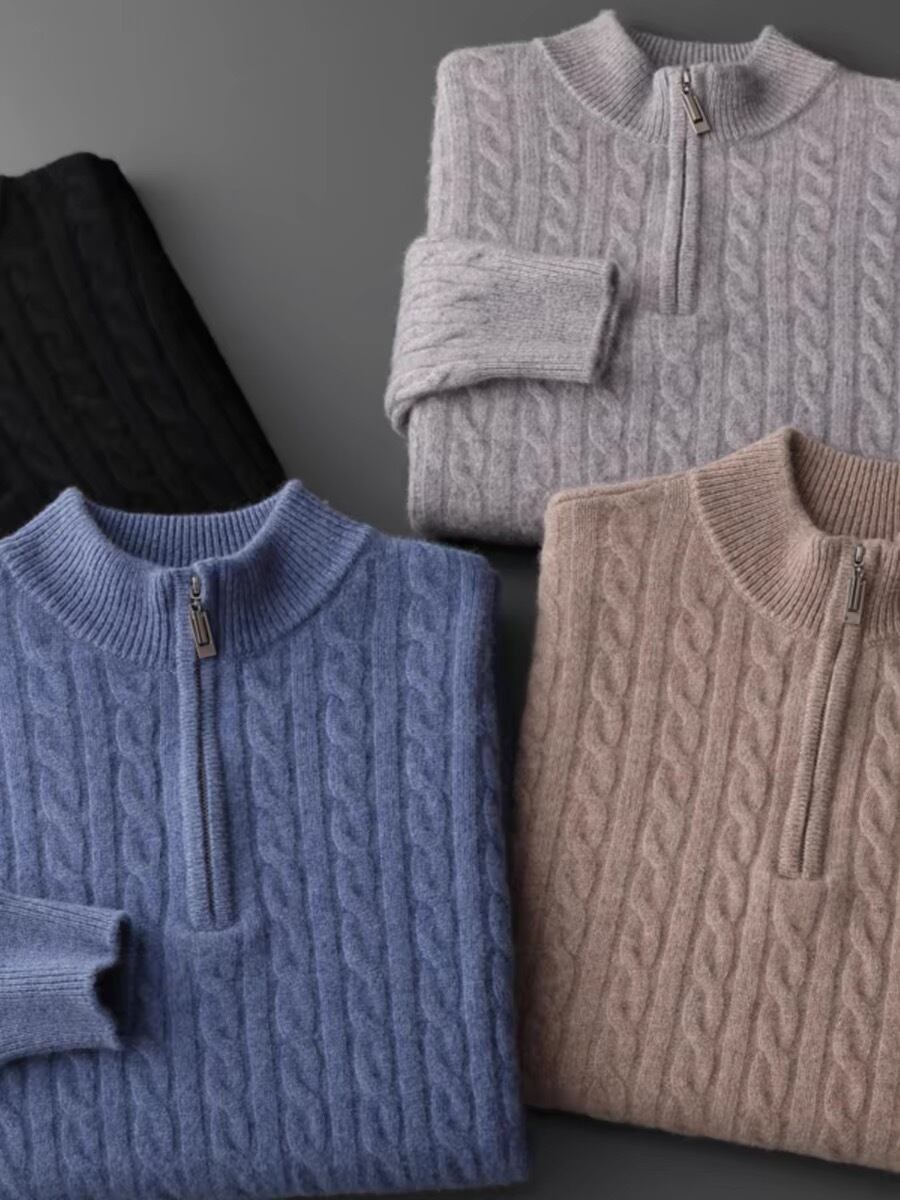 高品質なカシミヤ素材でできたメンズセーター。ハイジップセーターのデザインはシンプルでありながら、上質な素材感が魅力です。カシミヤ100%で作られたこのセーターは、柔らかな肌触りと暖かさを実現しています。紳士のカシミヤセーターとして、ビジネスシーンからデートまで幅広く活躍してくれます。