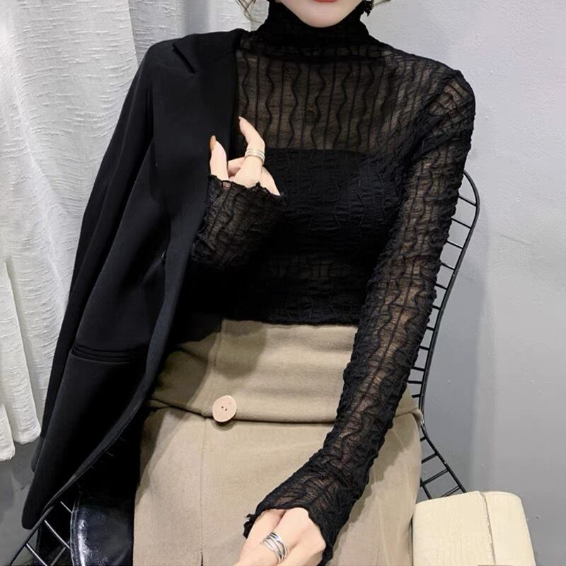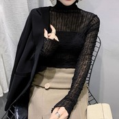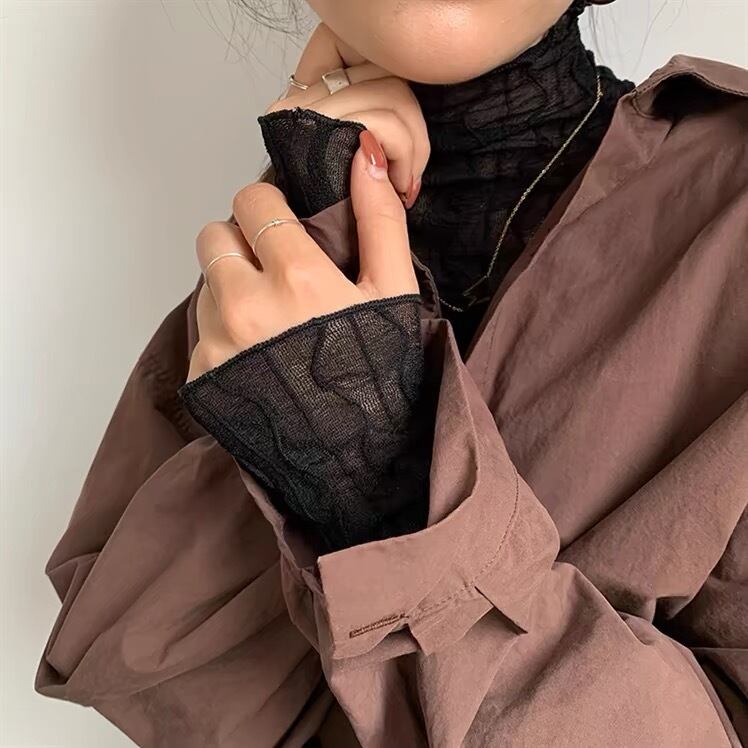 2枚まとめ買いで送料無料 シアートップス 長袖 シアー トップス ハイネック レディース 長袖 UV対策 紫外線対策 シースルー トップス チュール 花柄 レイヤード インナー 薄手 きれいめ ドット | primarc