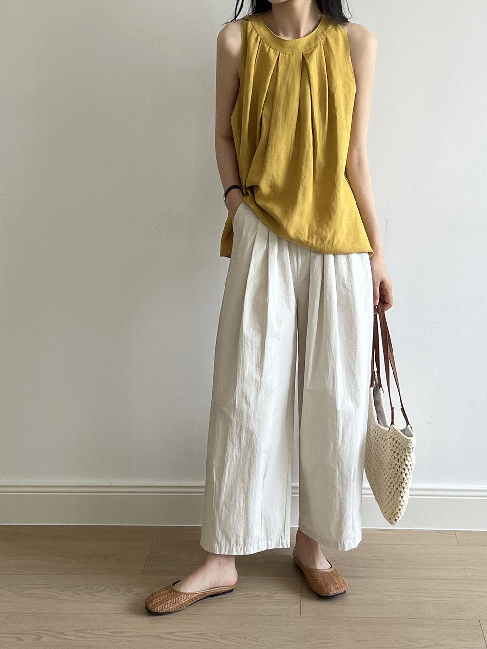 綿素材のバルーンパンツは、春夏にぴったりのアイテムです。ウエストゴム仕様で着心地も抜群。カジュアルなデザインが、さりげなくおしゃれな着こなしを叶えます。ウエスト部分はゆるやかに広がるコクーンシルエットで、動きやすさもバツグン。ポケットが付いているのも嬉しいポイントです。大人気のワイドパンツは、一枚持っているとコーディネートの幅が広がります。 裾の切り替えデザインが特徴的なバルーンパンツは、どんなトップスとも相性抜群。シンプルなプルオーバーからゆったりトップスまで、合わせるアイテムを選ぶ幅も広がります。ハイウエストで脚長効果抜群のデザインも魅力。是非、春夏のおしゃれに取り入れてみてください。