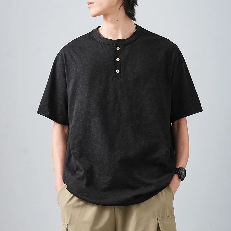 シンプルでクラシックなデザインが魅力のメンズ半袖Tシャツ。無駄な装飾をそぎ落とし、洗練されたシルエットで大人のカジュアルスタイルを完成させます。Vネック、クルーネック、ヘンリーネックの3タイプをご用意し、お好みやシーンに合わせてお選びいただけます。 着心地も重視した素材を厳選。肌触りの良いカットソー生地を使用し、通気性が高く汗をかいても快適な着心地を提供します。ストレッチ性も兼ね備えており、動きやすさも抜群です。