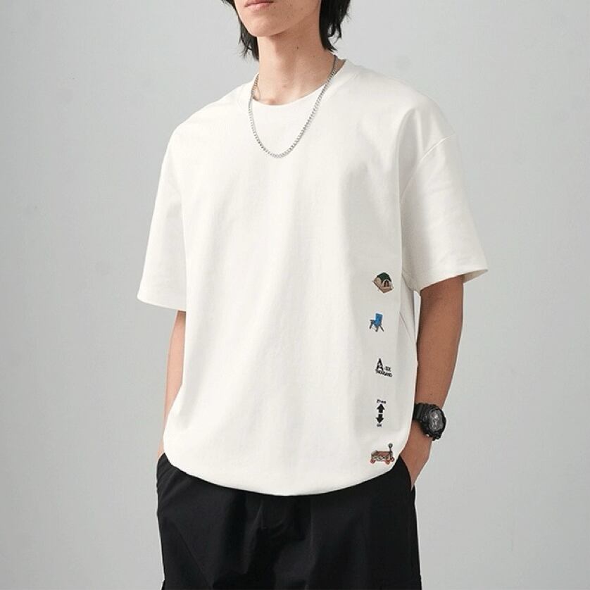 送料無料 刺繡入り ロンT メンズ 半袖 無地 白 厚手 メンズTシャツ ティーシャツ 丈夫 透けない半袖 襟の伸びない シンプル 無地 カットソー クルーネック ビジネスインナー ルームウェア シンプル 無地 TシャツステッチコットンTシャツ | primarc