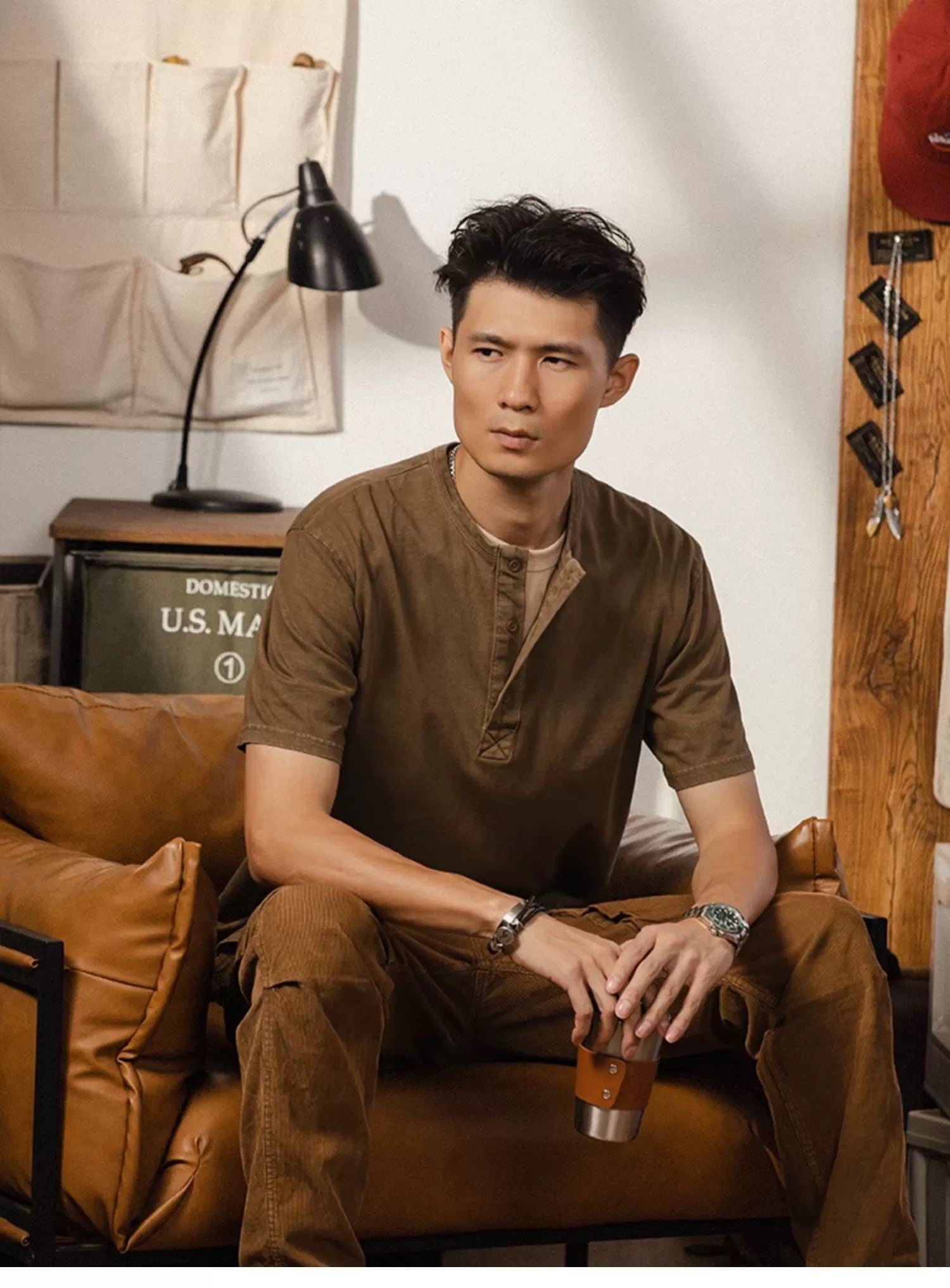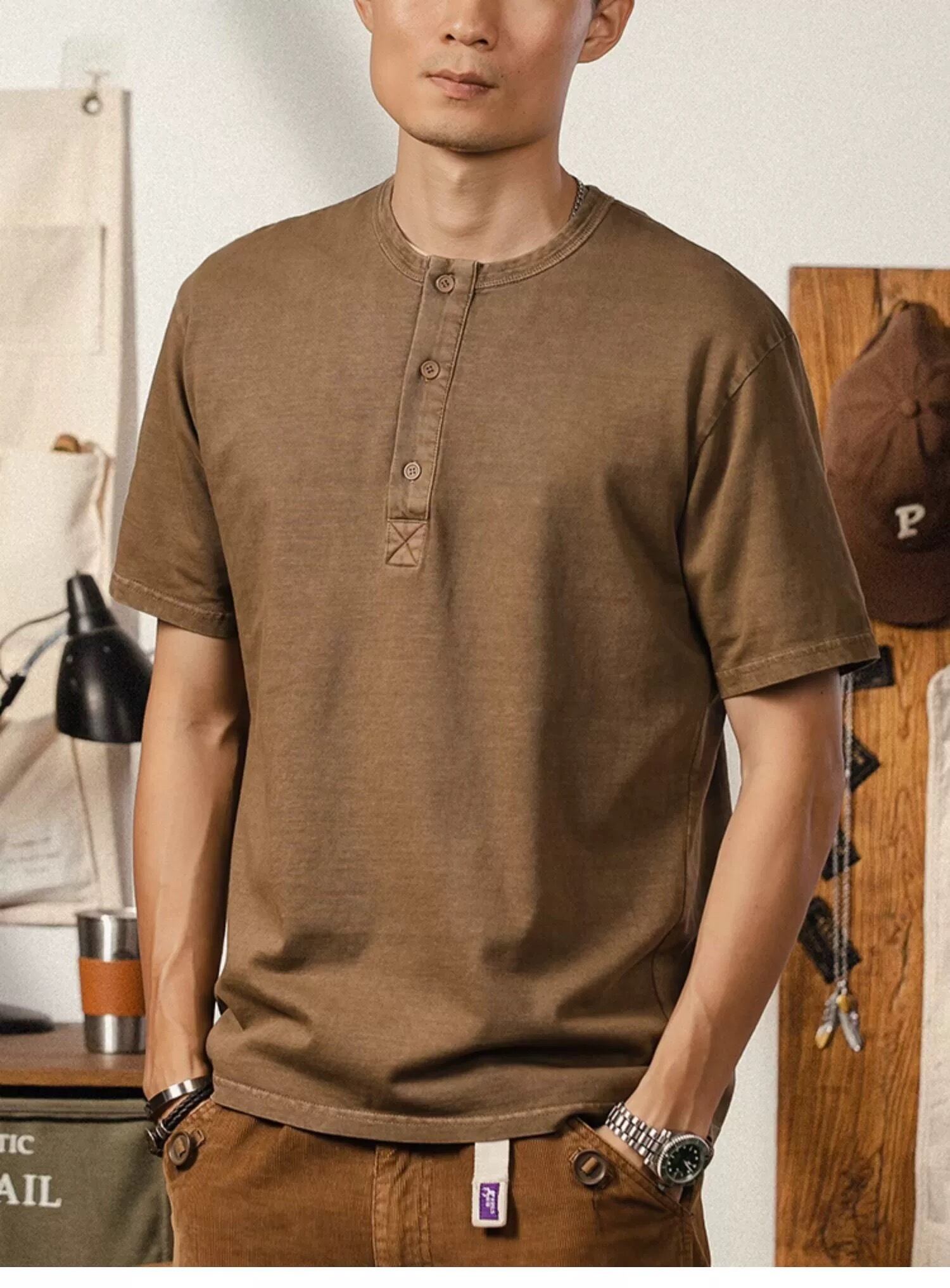 シンプルで着回しやすいヘンリーネックのメンズロングTシャツ。カジュアルからスタイリッシュなコーディネートまで幅広く対応できる優れものです。綿100%の素材で、通気性も抜群。着心地も良く、快適な着用感が特徴です。