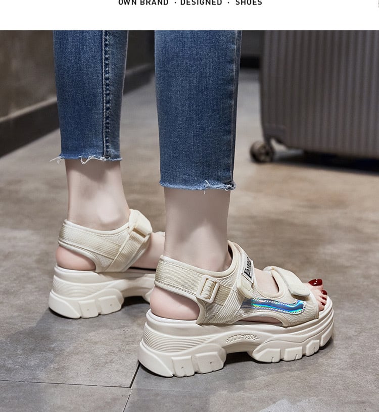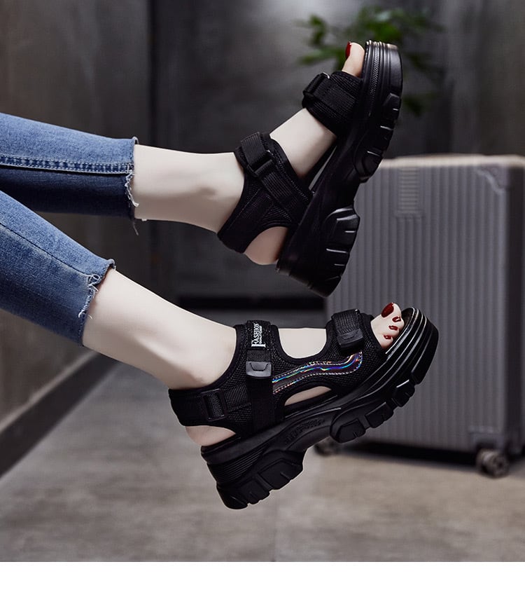涼し気なデザインと快適な履き心地が自慢のベルクロ厚底スポサン。足元をぐっと引き締めてくれるミドルヒールが、美脚効果を演出します。軽やかな歩行をサポートする5cmヒールと、長時間歩いても疲れにくいクッション性が特徴です。ラウンドトゥのデザインとベルクロベルトで、足首のフィット感が調節可能。洗練されたデザインは、カジュアルからスポーティーまで様々なシーンで活躍します。