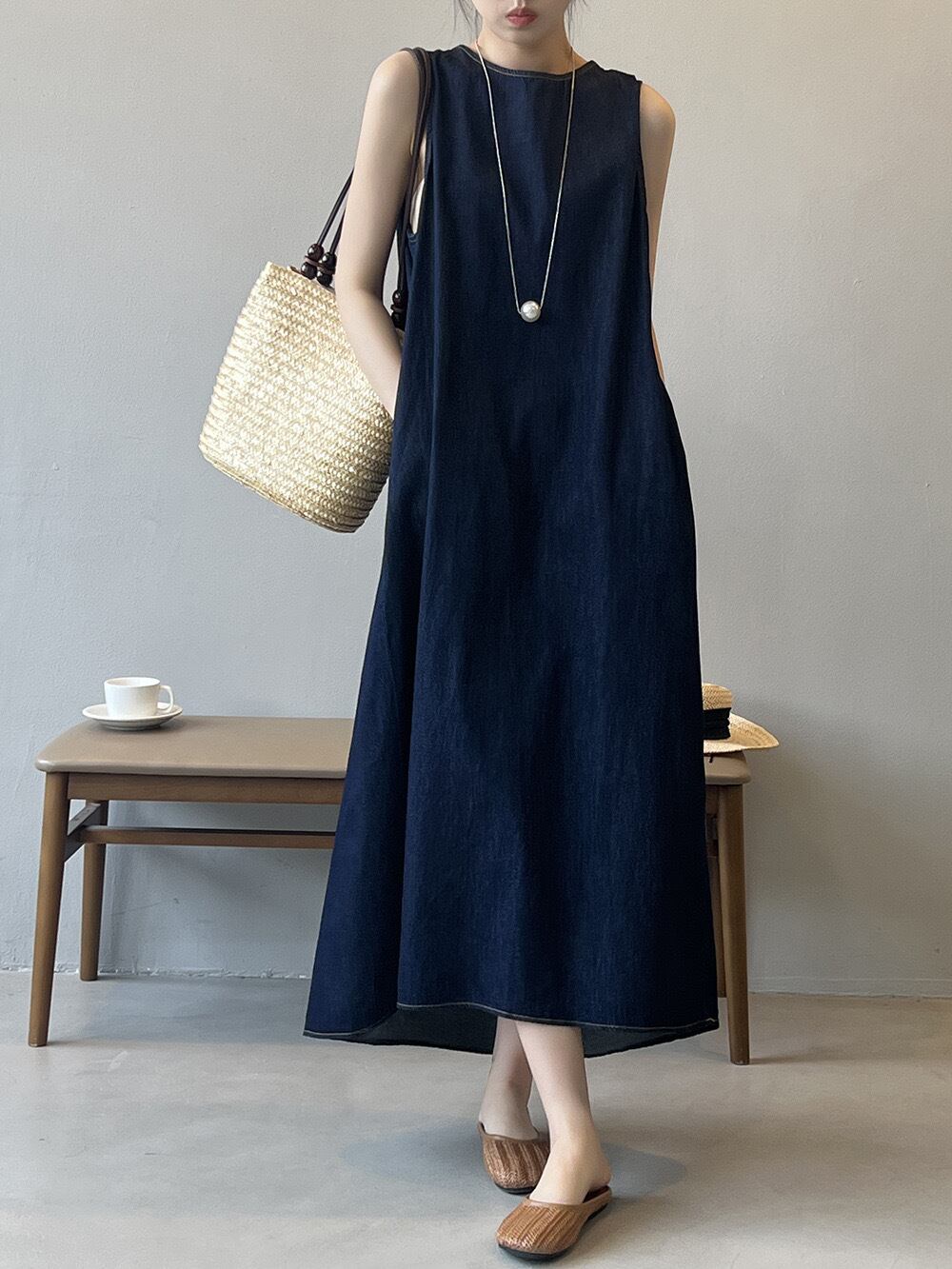 ワンピース 春 夏 レディース ノースリーブ ロング丈 Iライン きれいめ ビーチワンピース 女 スカート ワンピース 夏 秋 ドレス ワンピース 可愛い デート 大人 ノー袖 コットン 韓版 お洒落 体型カバー 着痩せ 華奢見え シンプル スッキリ カジュアル オフィス 通勤 OL | primarc