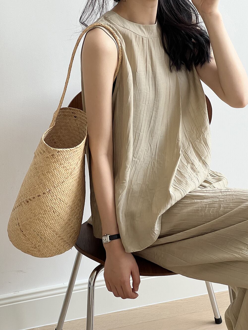 セットアップの着心地抜群!夏にぴったりの2点セット。ノースリーブブラウスとワイドパンツの組み合わせで、カジュアルからオフィスまで幅広いシーンで活躍します。体型をカバーしてくれるゆったりサイズで、快適な着心地を実現。さらに、薄手の素材で、夏場も涼しく着られるのがうれしいポイント。黒やキャメルの落ち着いた色合いが、上品な雰囲気を演出してくれます。オシャレなデザインで、通勤やオフィスシーンでも大活躍間違いなし!
