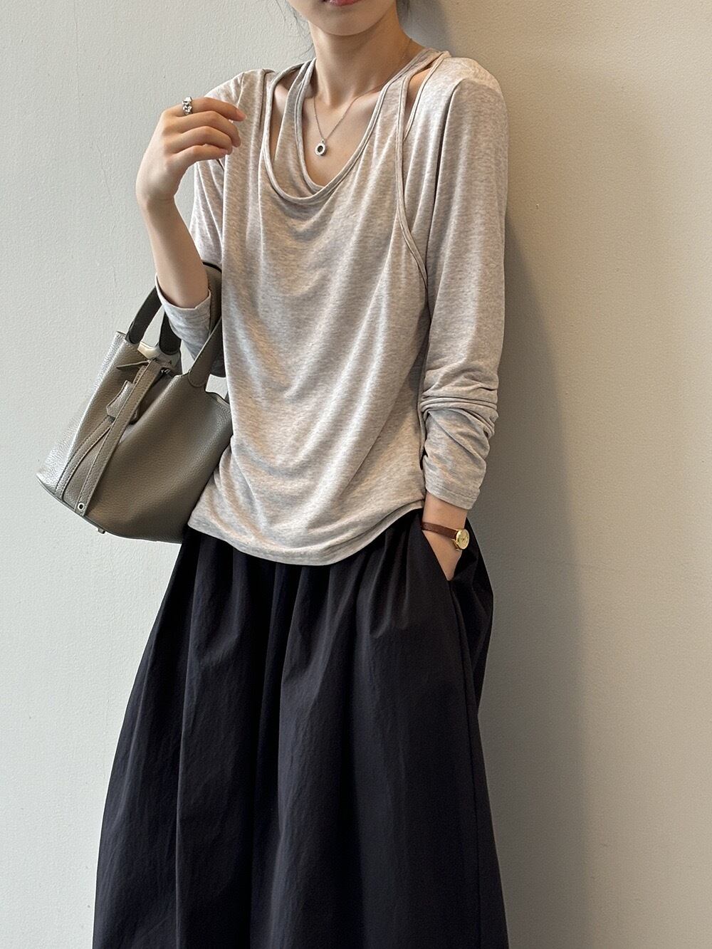 カットアウトデザインがポイントの、おしゃれなカットアウトトップスです。シンプルな無地デザインながら、肩や腕のカットアウトが抜け感を演出し、さりげなくお洒落な印象を与えます。柔らかな素材感で着心地も抜群。クルーネック・長袖なので、1枚でサマになる優れもの。レディースならではの洗練されたスタイリングに欠かせません。