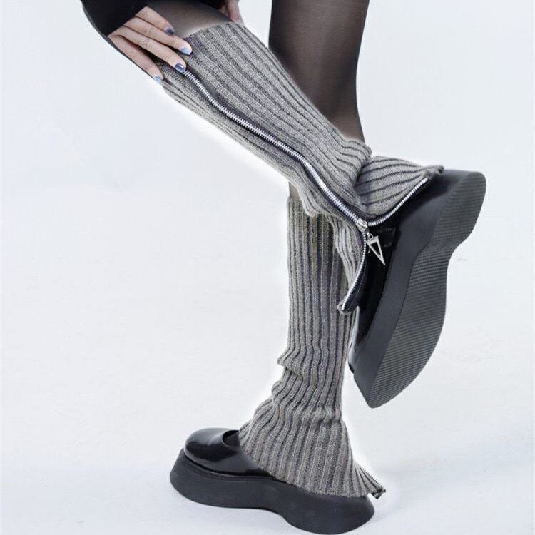ルーズソックス レッグウォーマー レディース 制服 学生服 ルーズソックス レッグフォーマー グレー フリルソックス,レディース ハイソックス - ジッパー山ブーツカバーハイストッキング網フリルドレスタイツコスプレ衣装 | primarc