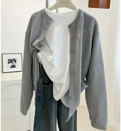 カーディガン スエット レディース トップス カーデ 羽織り 長袖 丸首 クルーネック プルオーバー スウェット トレーナー 綿混 コットン混 ポケット 体型カバー 大きいサイズ ゆったり 春 | primarc
