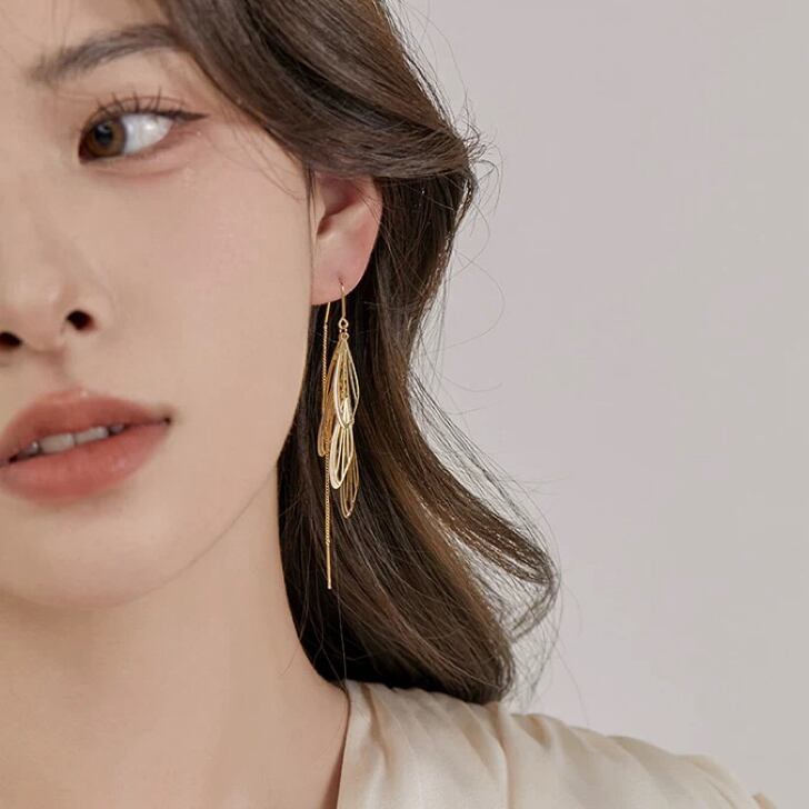 上品で華やかな印象を与える、ピアス・イヤリングのご紹介です!金属アレルギーの方にも安心のニッケルフリー素材を使用しており、長時間の着用でも快適です。ロングフリンジチェーンのデザインは、動くたびに揺れ、優雅な印象を演出します。特に結婚式やお呼ばれのシーンにぴったりのアクセサリーです。 普段使いから特別な日のおしゃれまで幅広く対応します。このピアス・イヤリングは、ゴールドとシルバーの2色展開で、どんなコーディネートにもマッチします。大切な方へのプレゼントやギフトとしても喜ばれること間違いなしです。