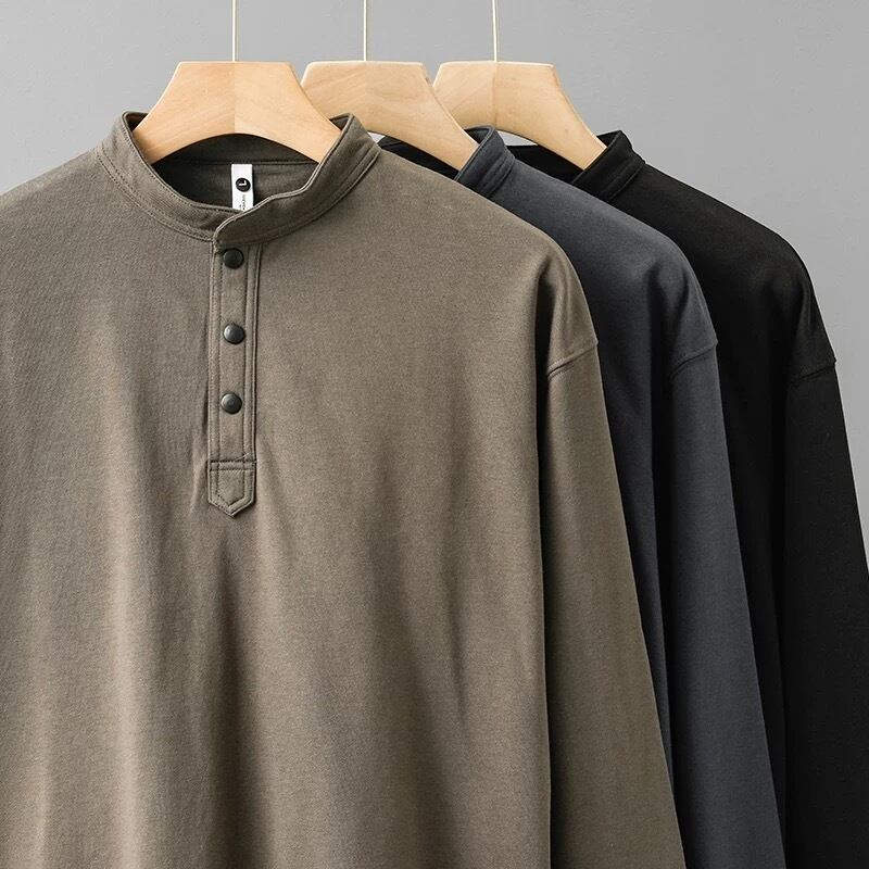 洗練されたシンプルさが魅力の「ヘンリーネック クルーネック メンズ ロングTシャツ」。100%綿の高品質な素材を使用し、柔らかな肌触りで快適な着心地を提供します!カジュアルにもビジネスシーンにもマッチし、幅広いシーンで活躍するアイテムです。